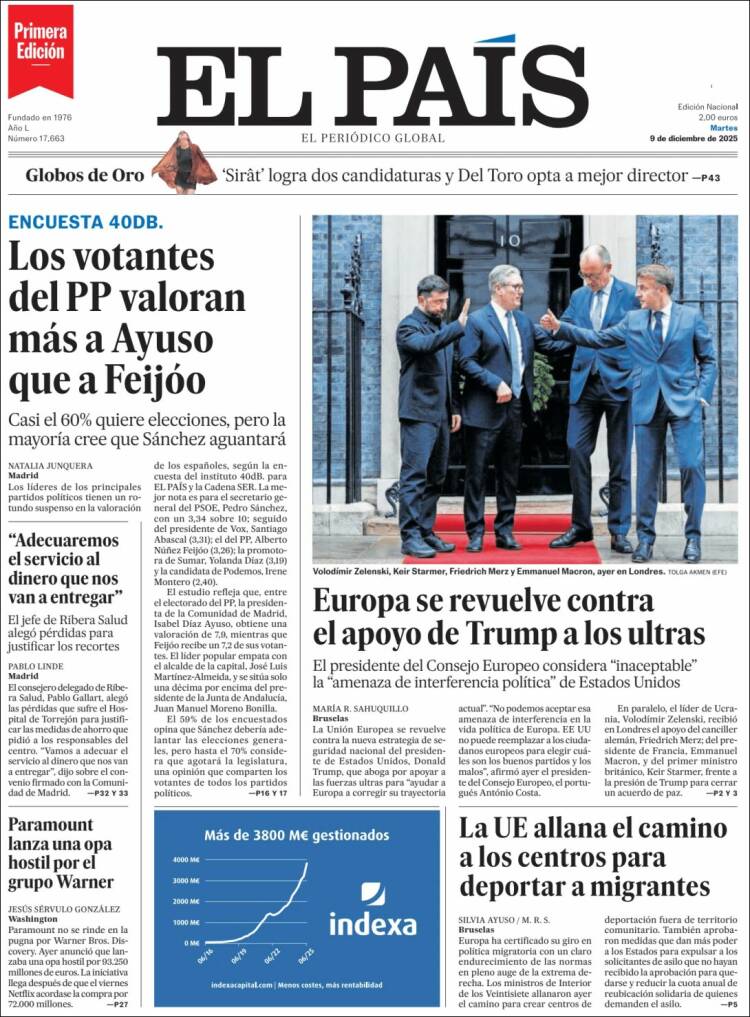 Portada del diario EL PAÍS del día 9/12/2025 News Europa9 diciembre, 20259 diciembre, 2025 Portada del diario EL PAÍS del día 9/12/2025