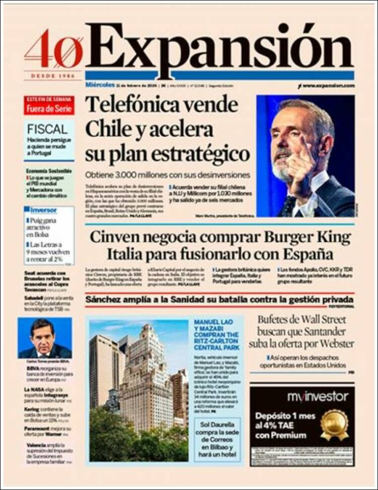 Portada del diario EXPANSIÓN del día 11/02/2026
