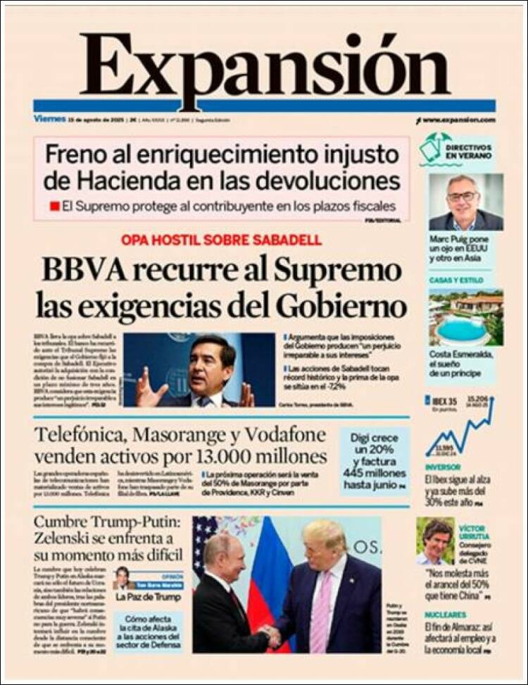 Portada del diario EXPANSIÓN del día 15/08/2025 News Europa15 agosto, 2025 Portada del diario EXPANSIÓN del día 15/08/2025