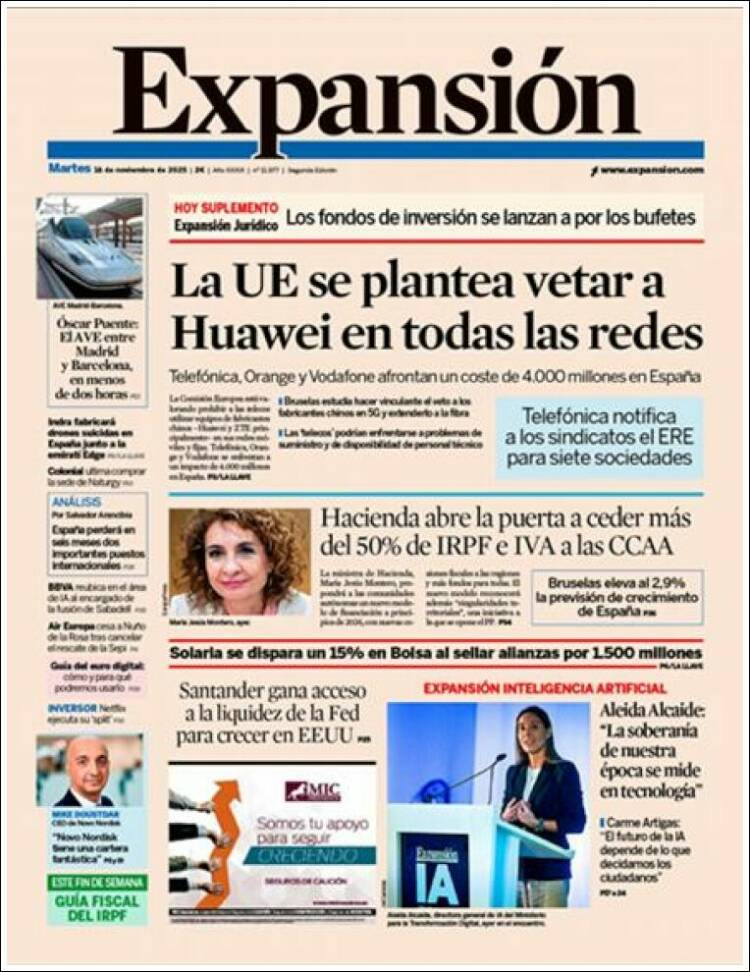 Portada del diario EXPANSIÓN del día 18/11/2025 News Europa18 noviembre, 202518 noviembre, 2025 Portada del diario EXPANSIÓN del día 19/11/2025