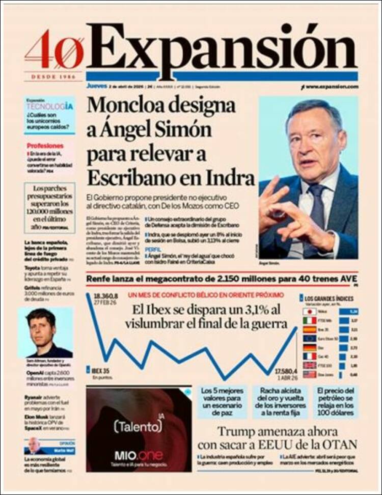 Portada del diario EXPANSIÓN del día 2/04/2026 News Europa2 abril, 2026 Portada del diario EXPANSIÓN del día 2/04/2026