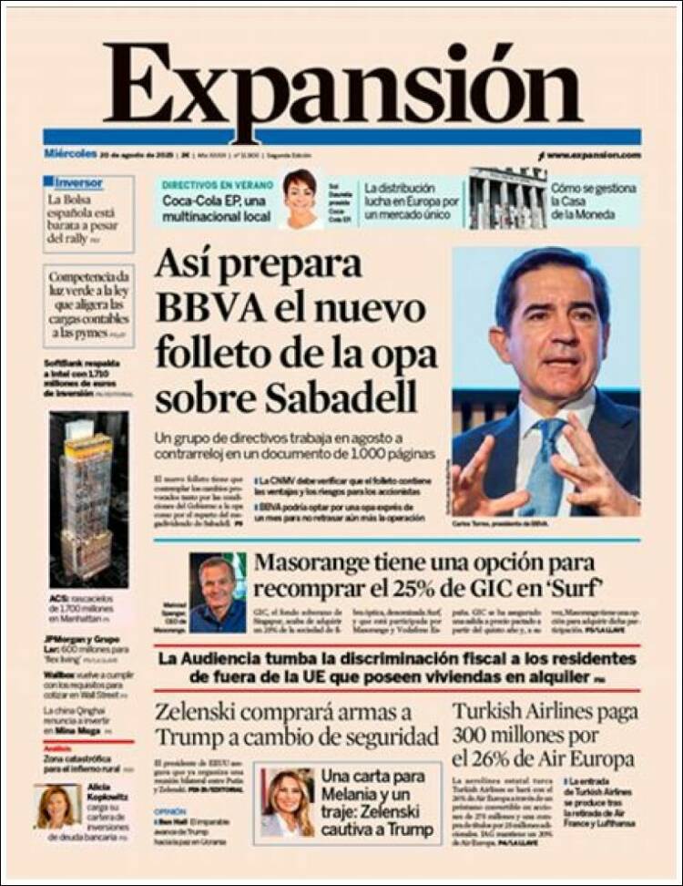 Portada del diario EXPANSIÓN del día 20/08/2025 News Europa20 agosto, 2025 Portada del diario EXPANSIÓN del día 20/08/2025