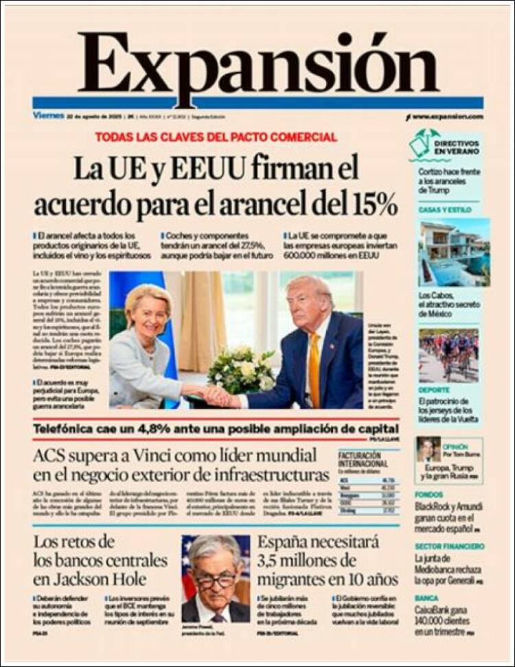 Portada del diario EXPANSIÓN del día 22/08/2025 News Europa22 agosto, 2025 Portada del diario EXPANSIÓN del día 22/08/2025