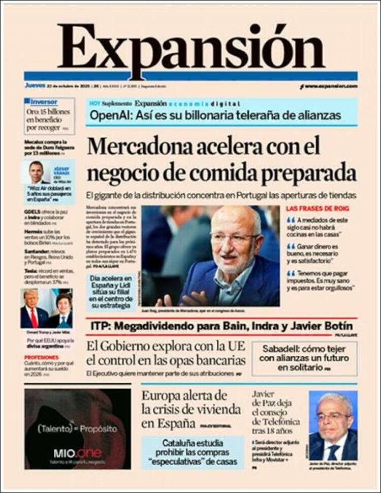 Portada del diario EXPANSIÓN del día 23/10/2025 News Europa23 octubre, 2025 Portada del diario EXPANSIÓN del día 23/10/2025