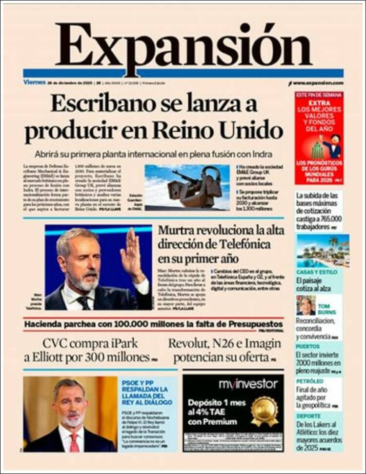 Portada del diario EXPANSIÓN del día 26/12/2025
