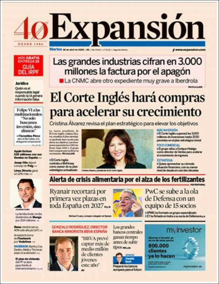 Portada del diario EXPANSIÓN del día 28/04/2026 News Europa28 abril, 2026 Portada del diario EXPANSIÓN del día 28/04/2026
