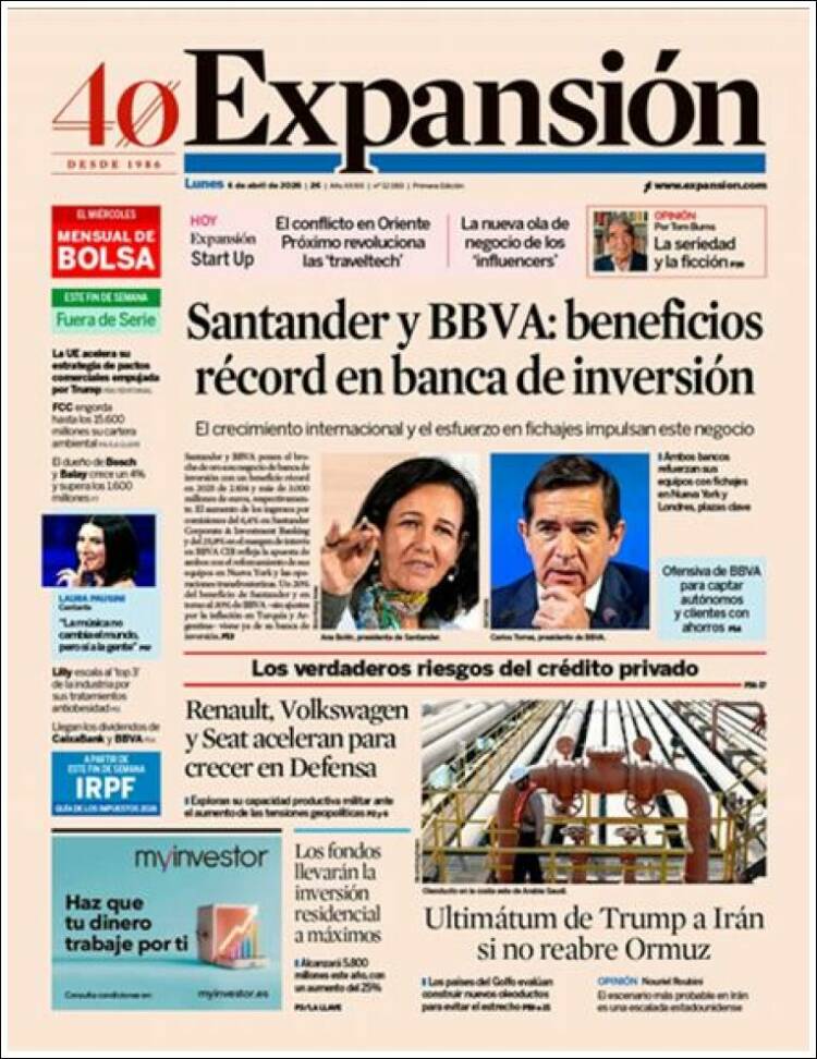 Portada del diario EXPANSIÓN del día 6/04/2026 News Europa6 abril, 2026 Portada del diario EXPANSIÓN del día 6/04/2026