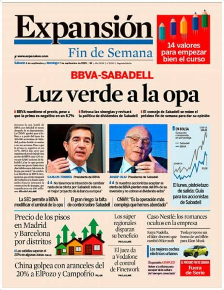 Portada del diario EXPANSIÓN del día 6/09/2025 News Europa6 septiembre, 2025 Portada del diario EXPANSIÓN del día 6/09/2025