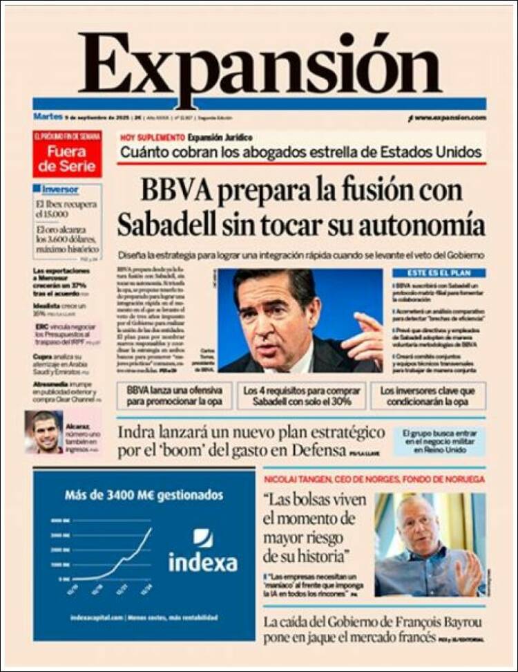 Portada del diario EXPANSIÓN del día 9/09/2025 News Europa9 septiembre, 2025 Portada del diario EXPANSIÓN del día 9/09/2025