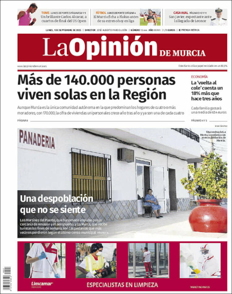 Portada del diario LA OPINIÓN DE MURCIA del día 1/09/2025 News Europa1 septiembre, 2025 Portada del diario LA OPINIÓN DE MURCIA del día 1/09/2025