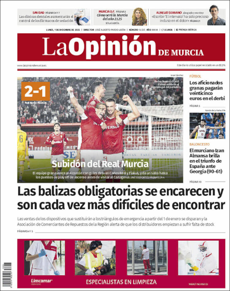 Portada del diario LA OPINIÓN DE MURCIA del día 1/12/2025 News Europa1 diciembre, 2025 Portada del diario LA OPINIÓN DE MURCIA del día 1/12/2025