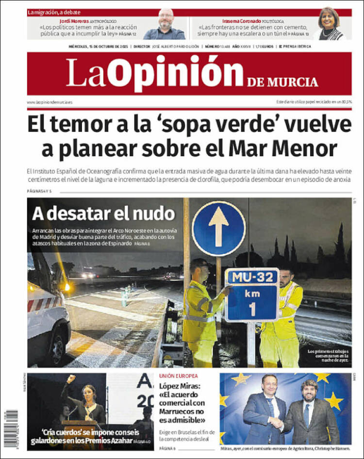 Portada del diario LA OPINIÓN DE MURCIA del día 15/10/2025 News Europa15 octubre, 2025 Portada del diario LA OPINIÓN DE MURCIA del día 15/10/2025