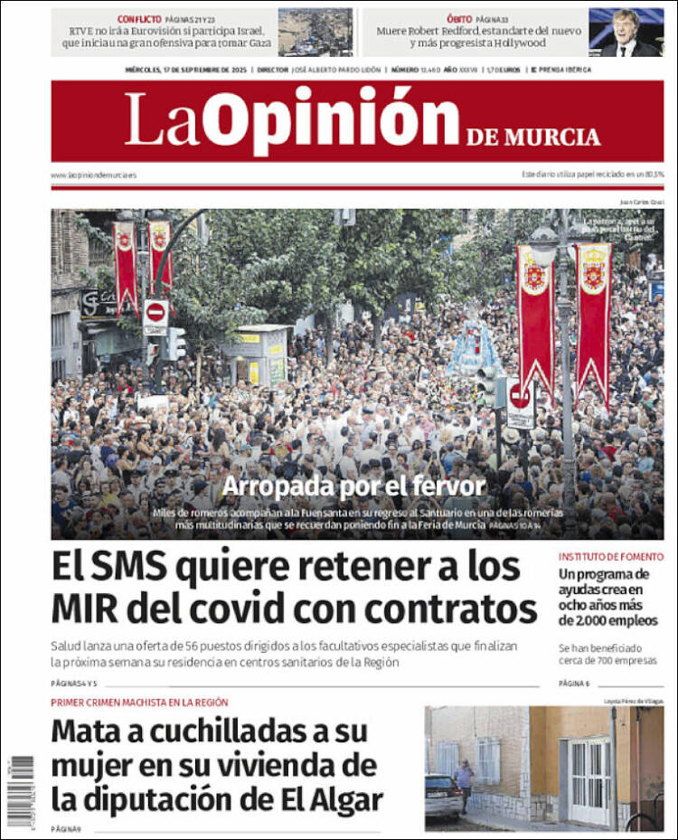Portada del diario LA OPINIÓN DE MURCIA del día 17/09/2025 News Europa17 septiembre, 2025 Portada del diario LA OPINIÓN DE MURCIA del día 17/09/2025
