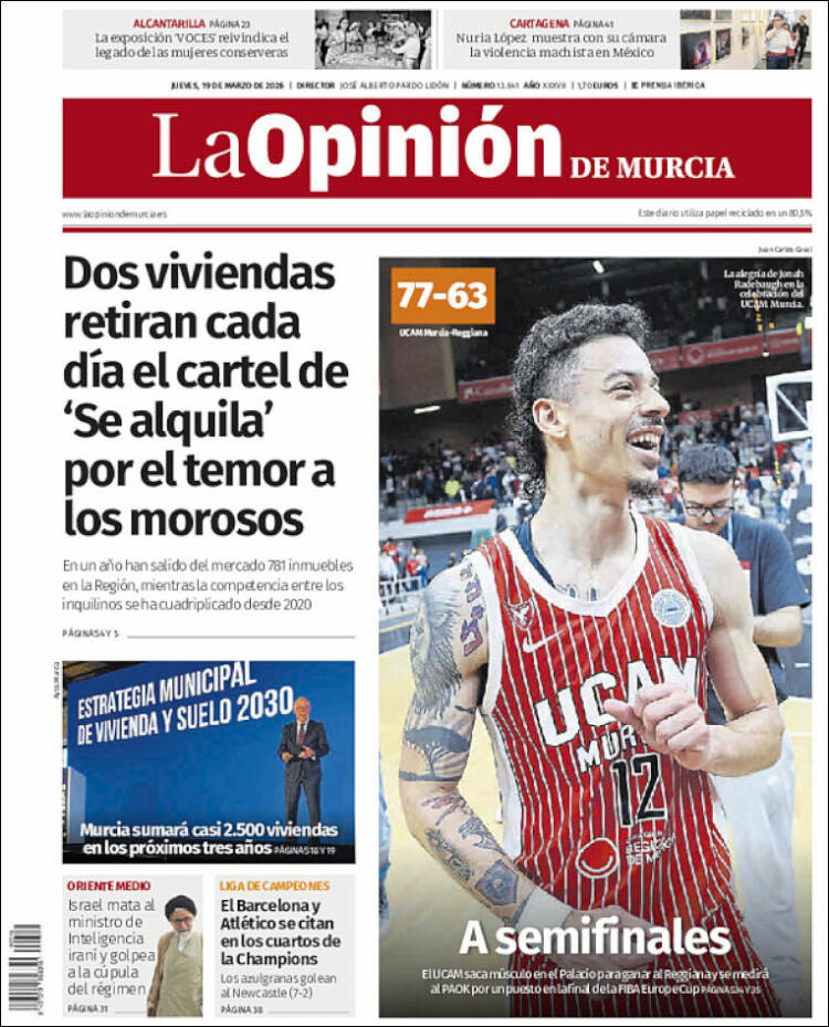 Portada del diario LA OPINIÓN DE MURCIA del día 19/03/2026 News Europa19 marzo, 2026 Portada del diario LA OPINIÓN DE MURCIA del día 19/03/2026