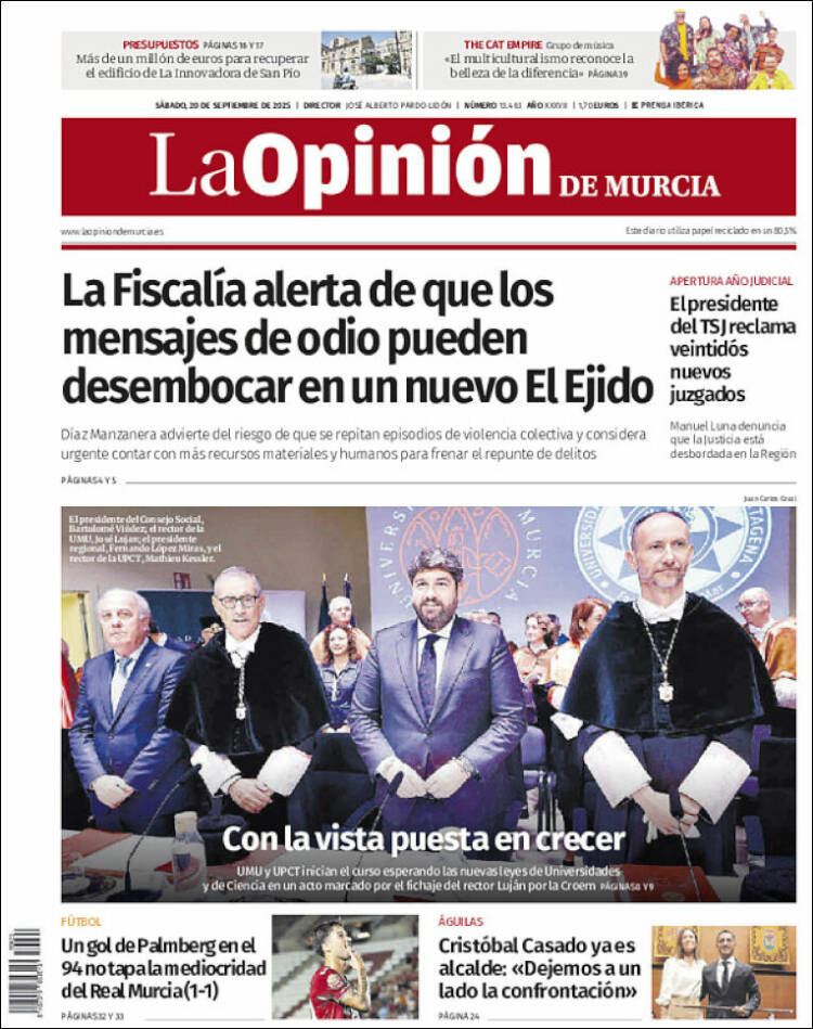 Portada del diario LA OPINIÓN DE MURCIA del día 20/09/2025 News Europa20 septiembre, 2025 Portada del diario LA OPINIÓN DE MURCIA del día 20/09/2025