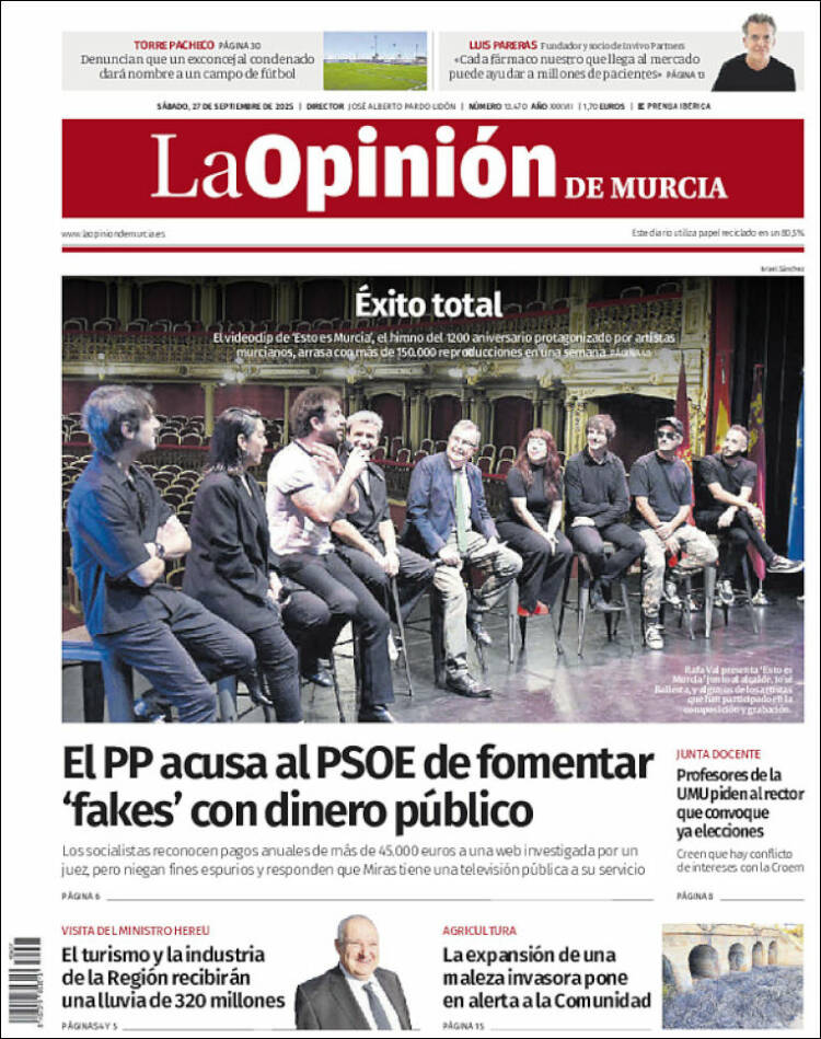 Portada del diario LA OPINIÓN DE MURCIA del día 27/09/2025 News Europa27 septiembre, 2025 Portada del diario LA OPINIÓN DE MURCIA del día 27/09/2025