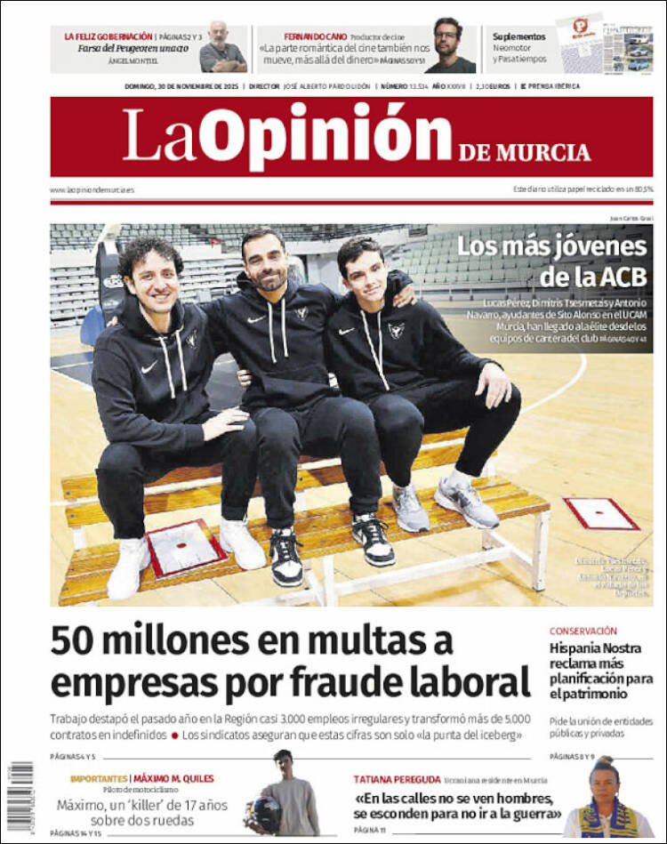 Portada del diario LA OPINIÓN DE MURCIA del día 30/11/2025