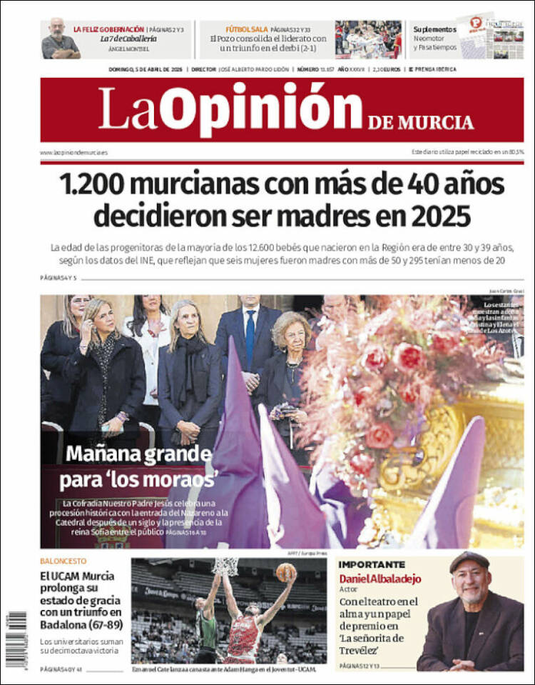 Portada del diario LA OPINIÓN DE MURCIA del día 5/04/2026 News Europa5 abril, 2026 Portada del diario LA OPINIÓN DE MURCIA del día 5/04/2026