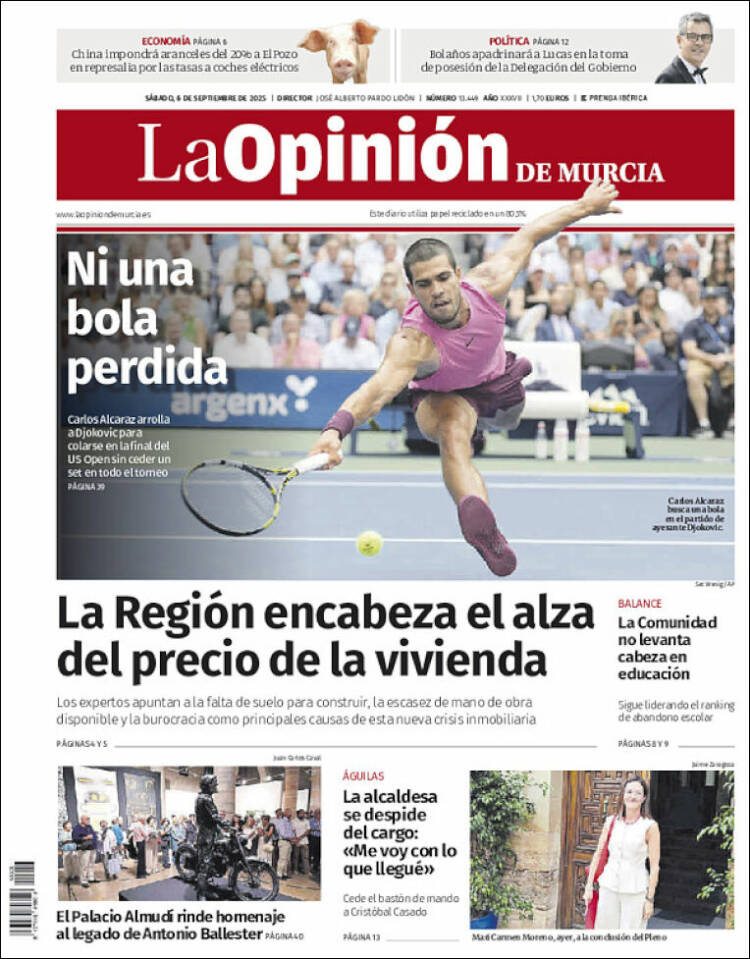 Portada del diario LA OPINIÓN DE MURCIA del día 6/09/2025 News Europa6 septiembre, 2025 Portada del diario LA OPINIÓN DE MURCIA del día 6/09/2025