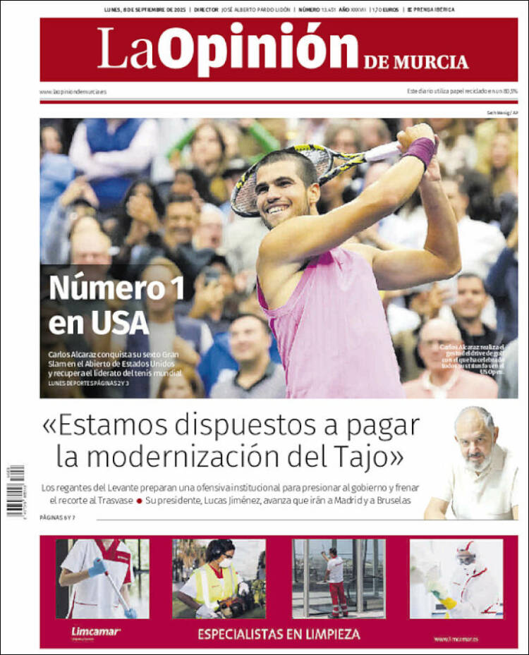 Portada del diario LA OPINIÓN DE MURCIA del día 8/09/2025 News Europa8 septiembre, 2025 Portada del diario LA OPINIÓN DE MURCIA del día 8/09/2025