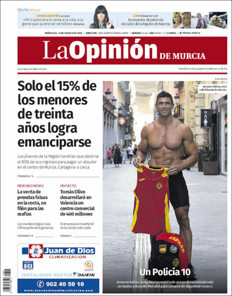 Portada del diario LA OPINIÓN del día 13/08/2025