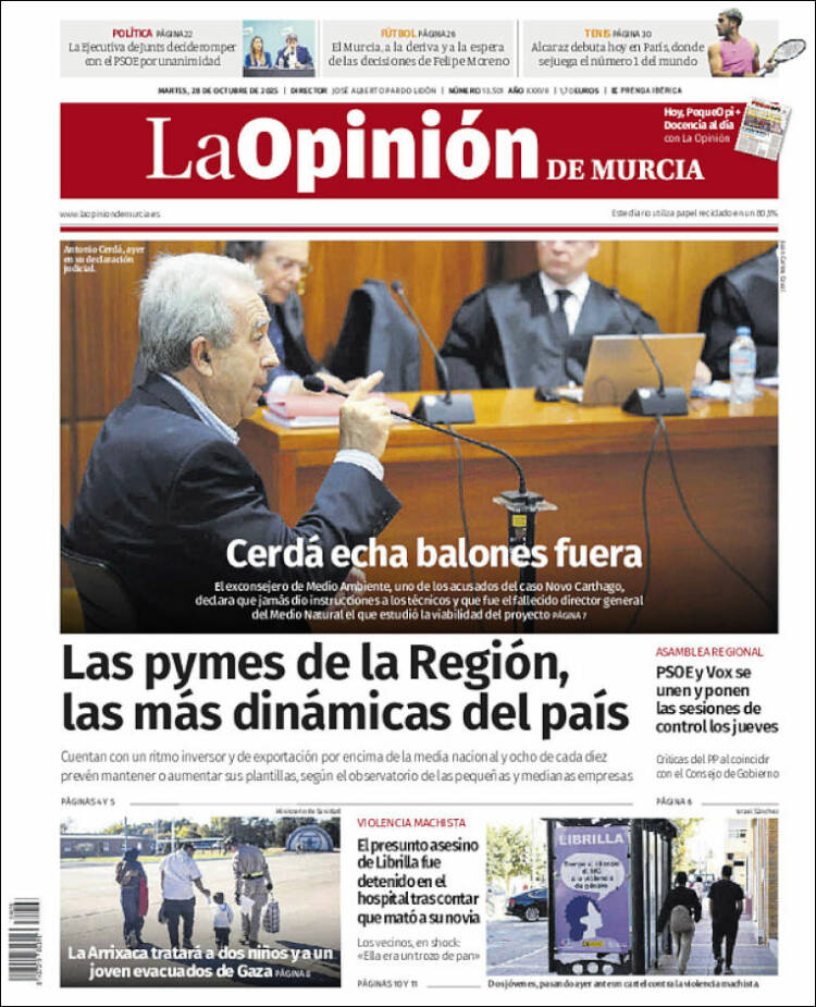Portada del diario LA OPINIÓN del día 28/10/2025