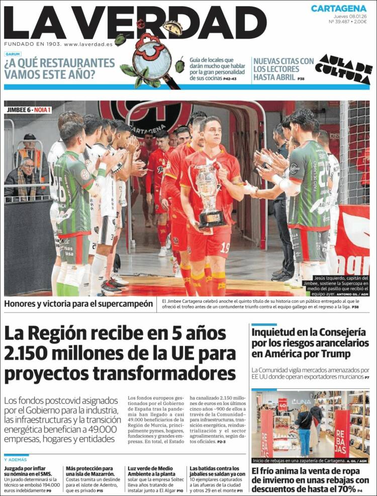 Portada del diario LA OPINIÓN del día 8/01/2026