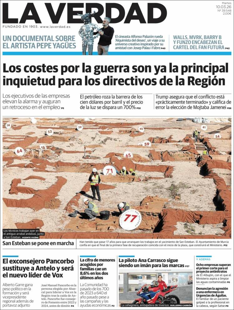 Portada del diario LA VERDAD DE MURCIA del día 10/03/2026 News Europa10 marzo, 202610 marzo, 2026 Portada del diario LA VEDAD DE MURCIA del día 10/03/2026