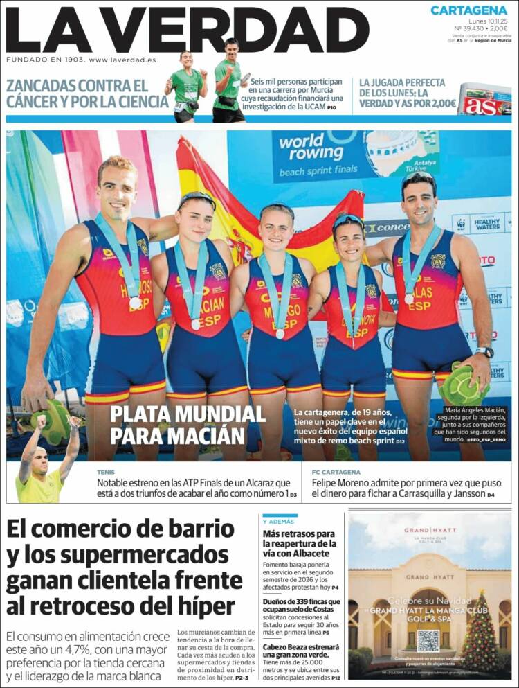 Portada del diario LA VERDAD DE CARTAGENA del día 10/11/2025 News Europa10 noviembre, 2025 Portada del diario LA VERDAD DE CARTAGENA del día 10/11/2025