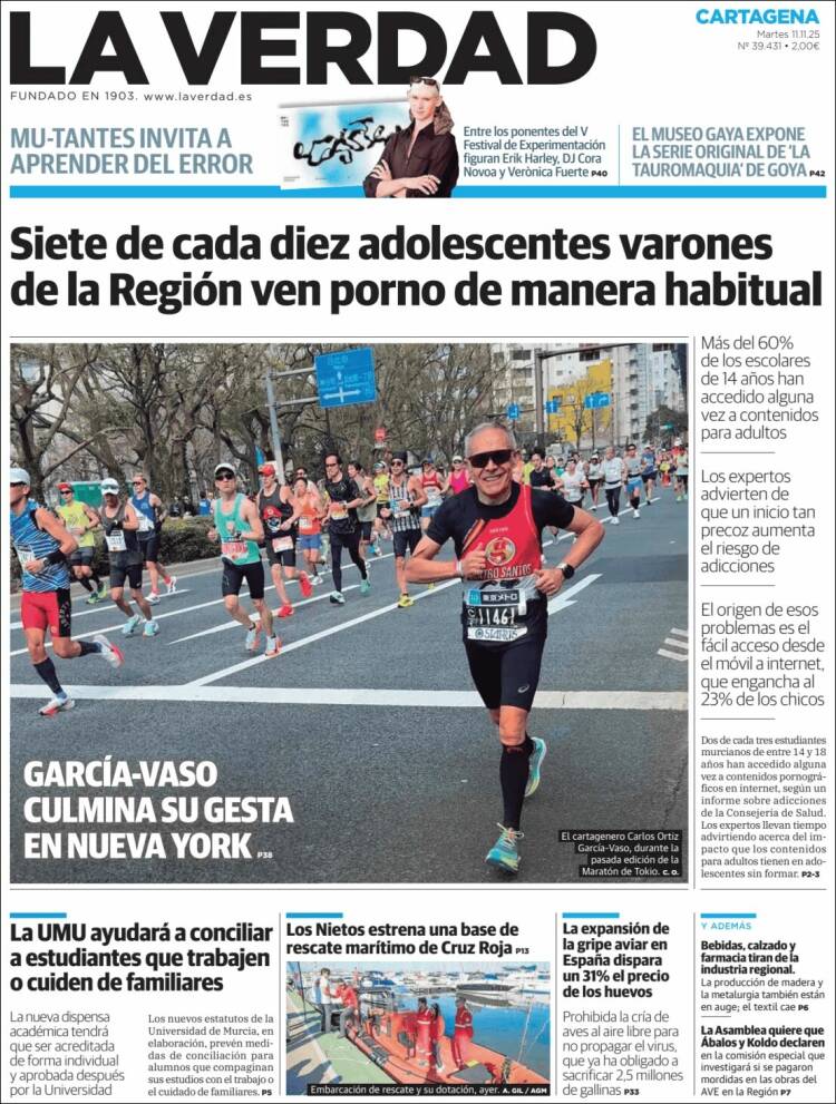 Portada del diario LA VERDAD DE CARTAGENA del día 11/11/2025 News Europa11 noviembre, 2025 Portada del diario LA VERDAD DE CARTAGENA del día 11/11/2025