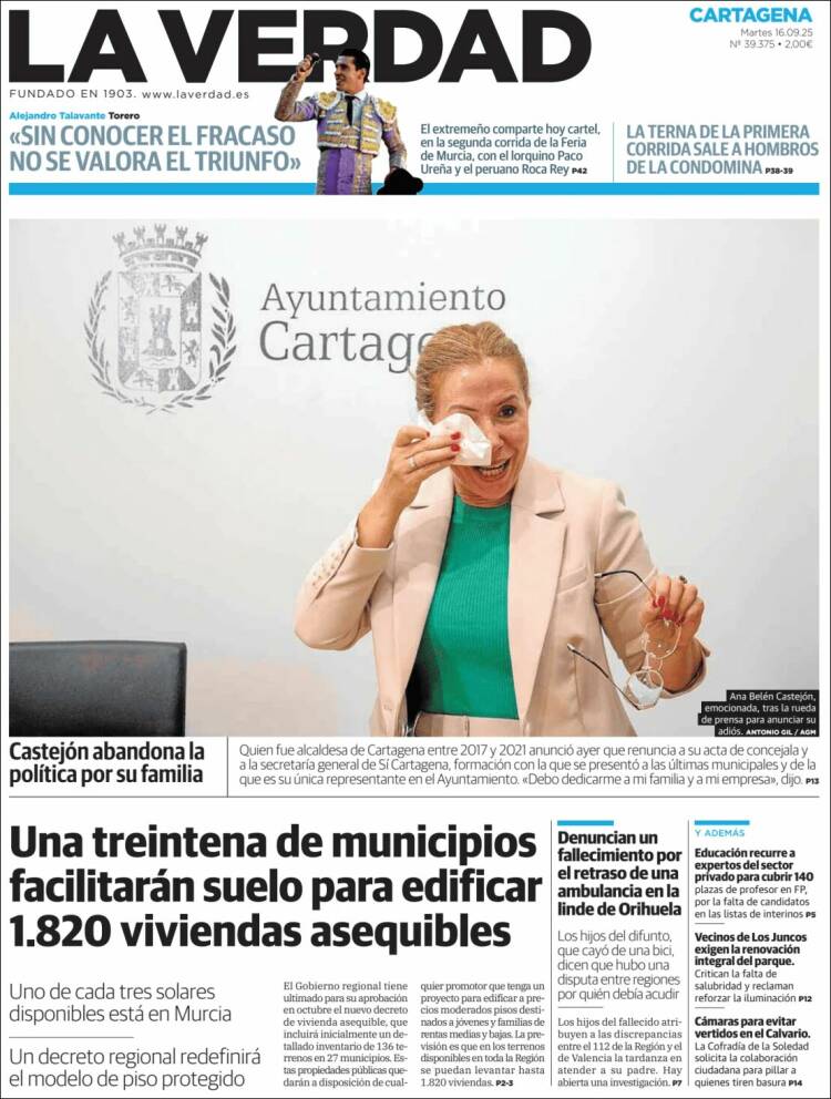 Portada del diario LA VERDAD DE CARTAGENA del día 16/09/2025 News Europa16 septiembre, 2025 Portada del diario LA VERDAD DE CARTAGENA del día 16/09/2025