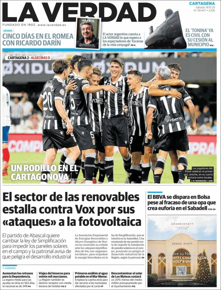 Portada del diario LA VERDAD DE CARTAGENA del día 18/10/2025 News Europa18 octubre, 2025 Portada del diario LA VERDAD DE CARTAGENA del día 18/10/2025