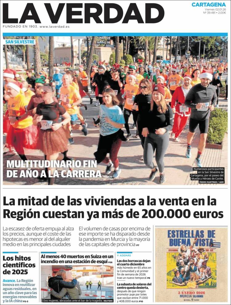 Portada del diario LA VERDAD DE CARTAGENA del día 2/01/2026 News Europa2 enero, 2026 Portada del diario LA VERDAD DE CARTAGENA del día 2/01/2026