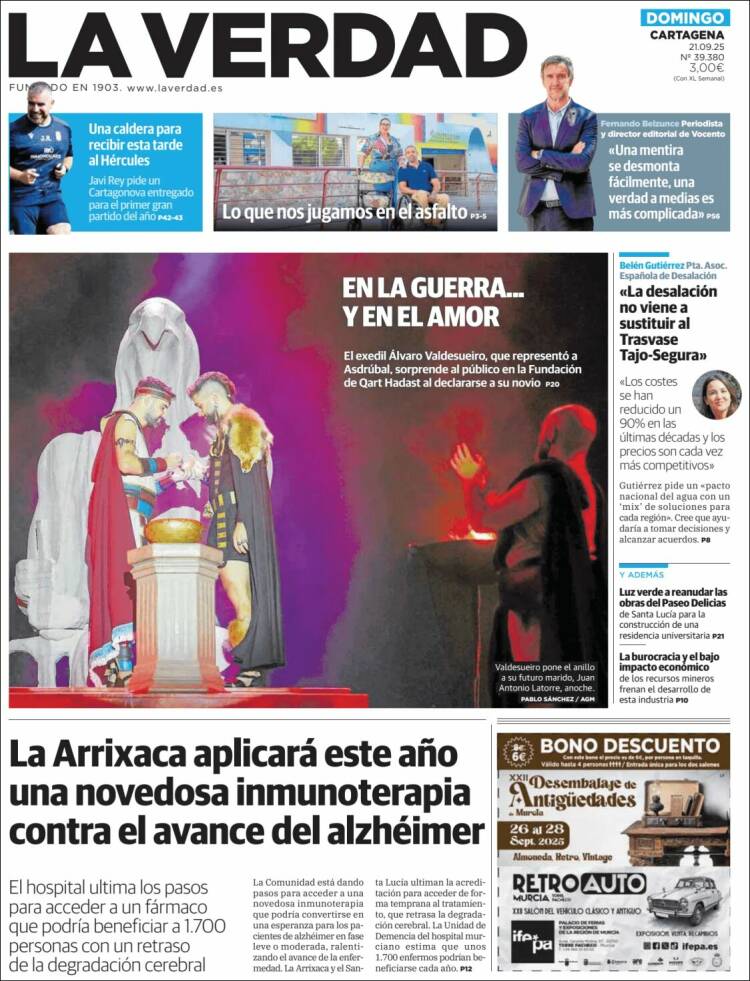 Portada del diario LA VERDAD DE CARTAGENA del día 21/09/2025 News Europa21 septiembre, 2025 Portada del diario LA VERDAD DE CARTAGENA del día 21/09/2025