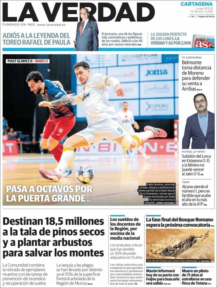 Portada del diario LA VERDAD DE CARTAGENA del día 3/11/2025 News Europa3 noviembre, 2025 Portada del diario LA VERDAD DE CARTAGENA del día 3/11/2025