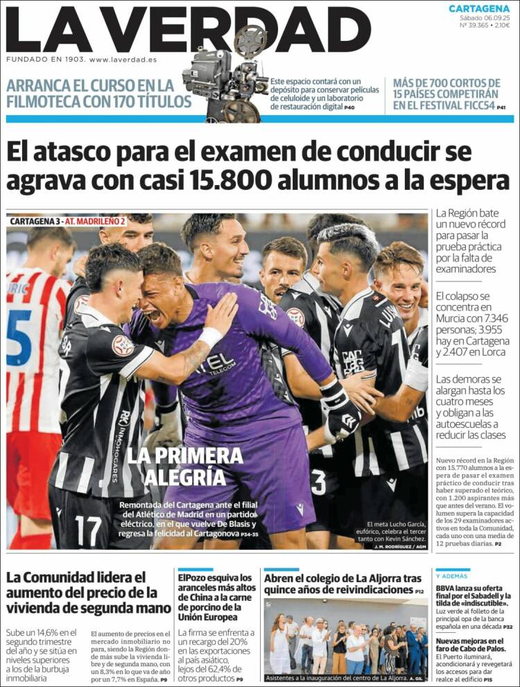 Portada del diario LA VERDAD DE CARTAGENA del día 6/09/2025 News Europa6 septiembre, 2025 Portada del diario LA VERDAD DE CARTAGENA del día 6/09/2025