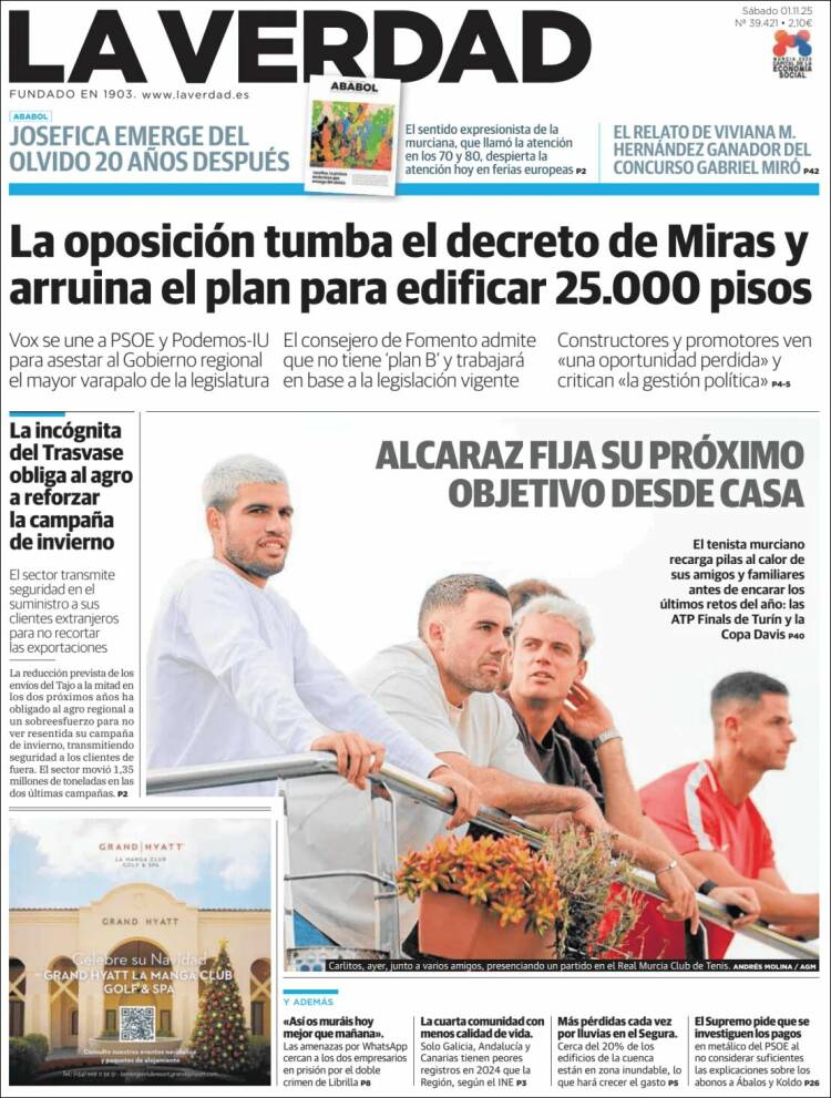 Portada del diario LA VERDAD DE MURCIA del día 1/11/2025 News Europa1 noviembre, 2025 Portada del diario LA VERDAD DE MURCIA del día 1/11/2025