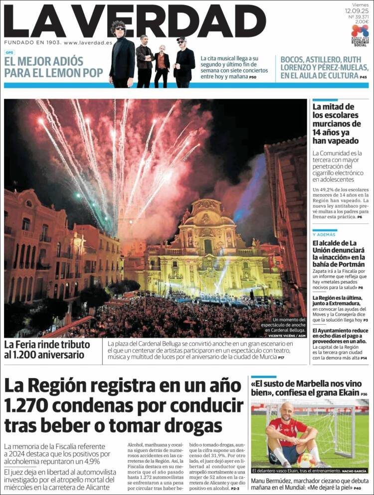 Portada del diario LA VERDAD DE MURCIA del día 12/09/2025 News Europa12 septiembre, 2025 Portada del diario LA VERDAD DE MURCIA del día 12/09/2025