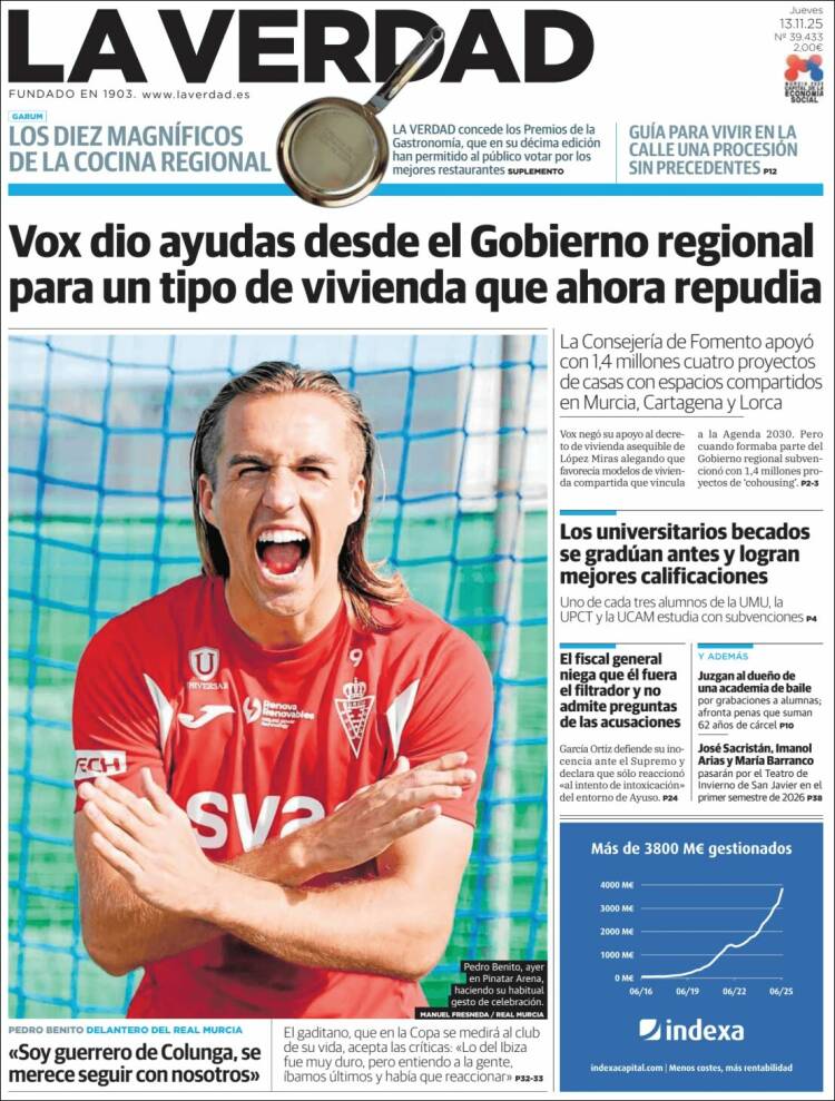 Portada del diario LA VERDAD DE MURCIA del día 13/11/2025 News Europa13 noviembre, 2025 Portada del diario LA VERDAD DE MURCIA del día 13/11/2025
