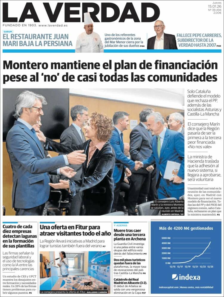 Portada del diario LA VERDAD DE MURCIA del día 15/01/2026 News Europa15 enero, 2026 Portada del diario LA VERDAD DE MURCIA del día 15/01/2026