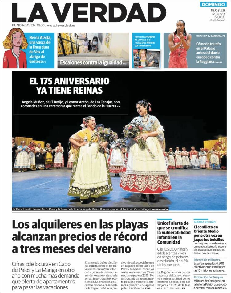 Portada del diario LA VERDAD DE MURCIA del día 15/03/2026 News Europa15 marzo, 2026 Portada del diario LA VERDAD DE MURCIA del día 15/03/2026