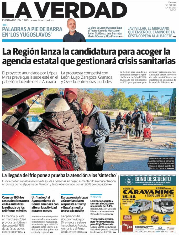 Portada del diario LA VERDAD DE MURCIA del día 16/01/2026 News Europa16 enero, 2026 Portada del diario LA VERDAD DE MURCIA del día 16/01/2026