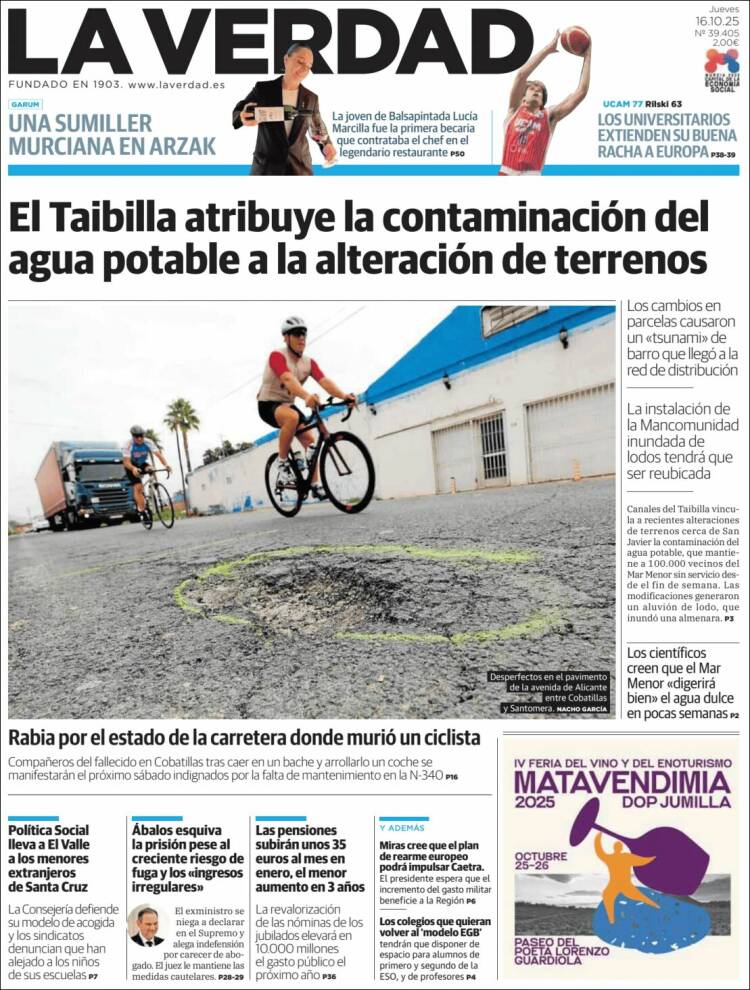 Portada del diario LA VERDAD DE MURCIA del día 16/10/2025