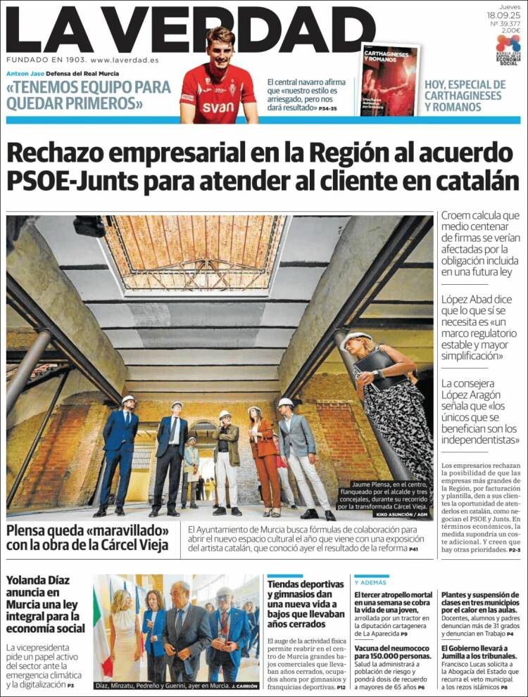 Portada del diario LA VERDAD DE MURCIA del día 18/09/2025 News Europa18 septiembre, 2025 Portada del diario LA VERDAD DE MURCIA del día 18/09/2025