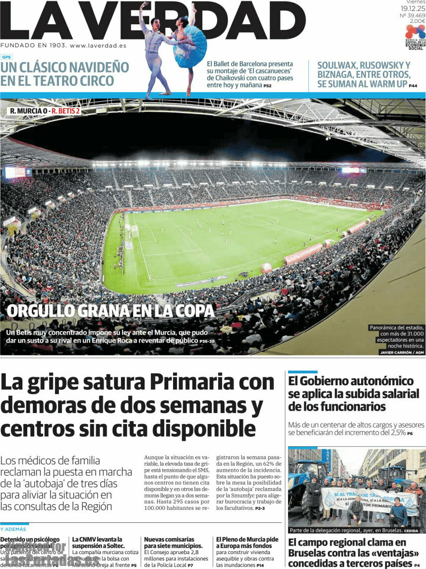 Portada del diario LA VERDAD DE MURCIA del día 19/12/2025 News Europa19 diciembre, 2025 Portada del diario LA VERDAD DE MURCIA del día 19/12/2025