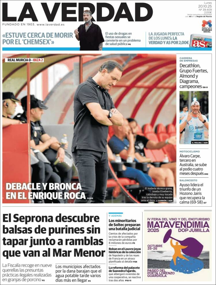Portada del diario LA VERDAD DE MURCIA del día 20/10/2025 News Europa20 octubre, 2025 Portada del diario LA VERDAD DE MURCIA del día 20/10/2025