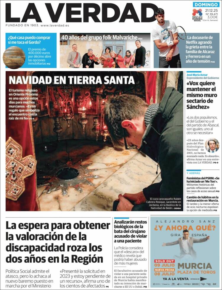 Portada del diario LA VERDAD DE MURCIA del día 21/12/2025