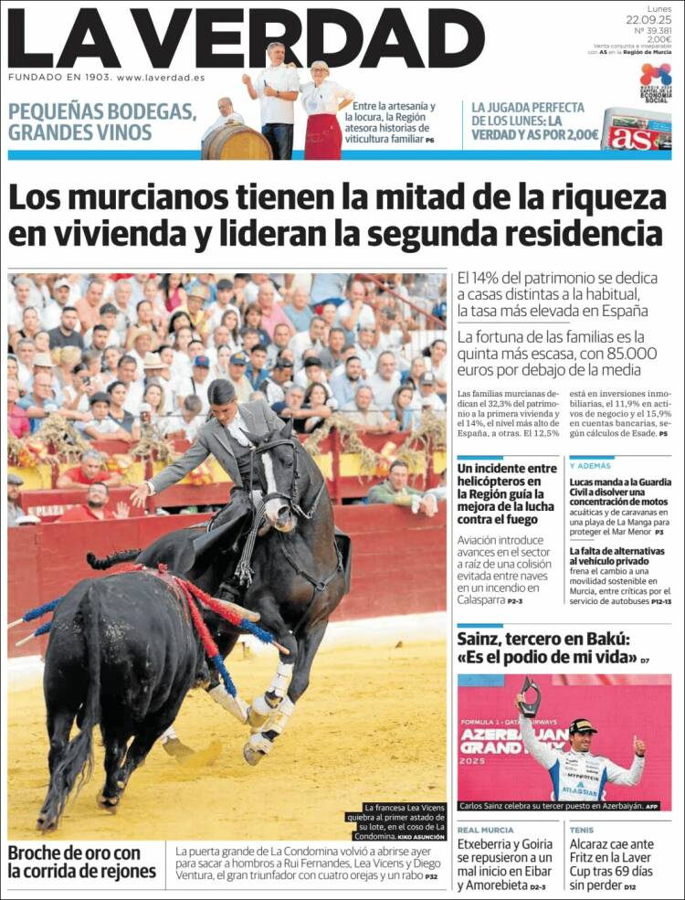 Portada del diario LA VERDAD DE MURCIA del día 22/09/2025 News Europa22 septiembre, 2025 Portada del diario LA VERDAD DE MURCIA del día 22/09/2025