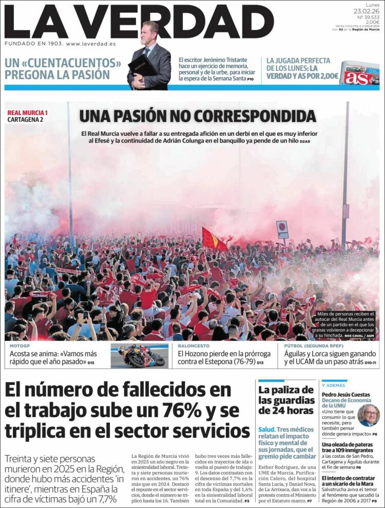 Portada del diario LA VERDAD DE MURCIA del día 23/02/2026 News Europa23 febrero, 2026 Portada del diario LA VERDAD DE MURCIA del día 23/02/2026