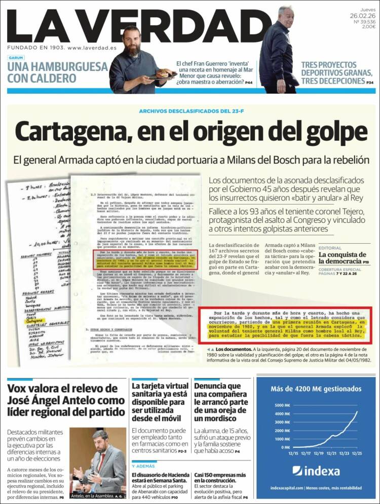 Portada del diario LA VERDAD DE MURCIA del día 26/02/2026 News Europa26 febrero, 2026 Portada del diario LA VERDAD DE MURCIA del día 26/02/2026